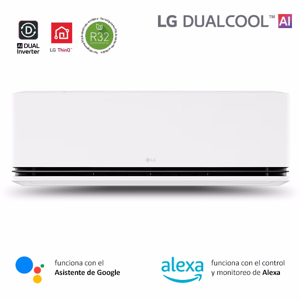 El aire acondicionado LG Dualcool AI Inverter está diseñado para ofrecer climatización eficiente y estable en diferentes espacios. Gracias a su tecnología de control inteligente, el equipo ajusta automáticamente su funcionamiento para mantener una temperatura agradable.
